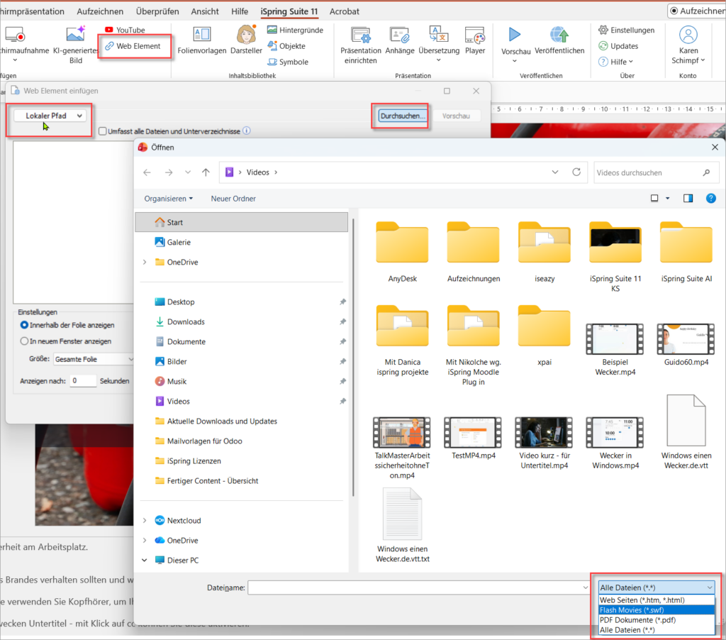 Lösung 2: Video als Web-Element (Lokaler Pfad) einfügen