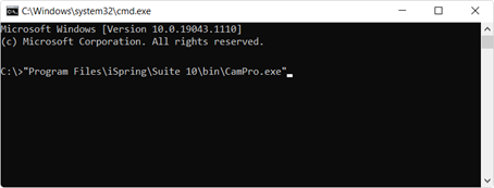 „C:\Programme\iSpring\Suite 11\bin\CamPro.exe“ /regServer. Bin32 -Ordner
