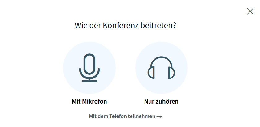 Klicken Sie auf „Mit dem Telefon teilnehmen“ und Ihnen wird eine Festnetznummer sowie PIN angezeigt.