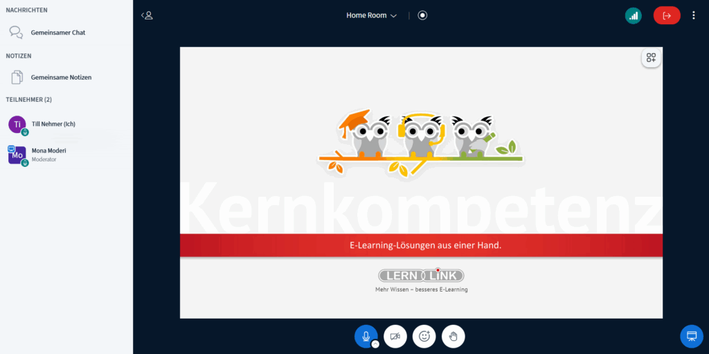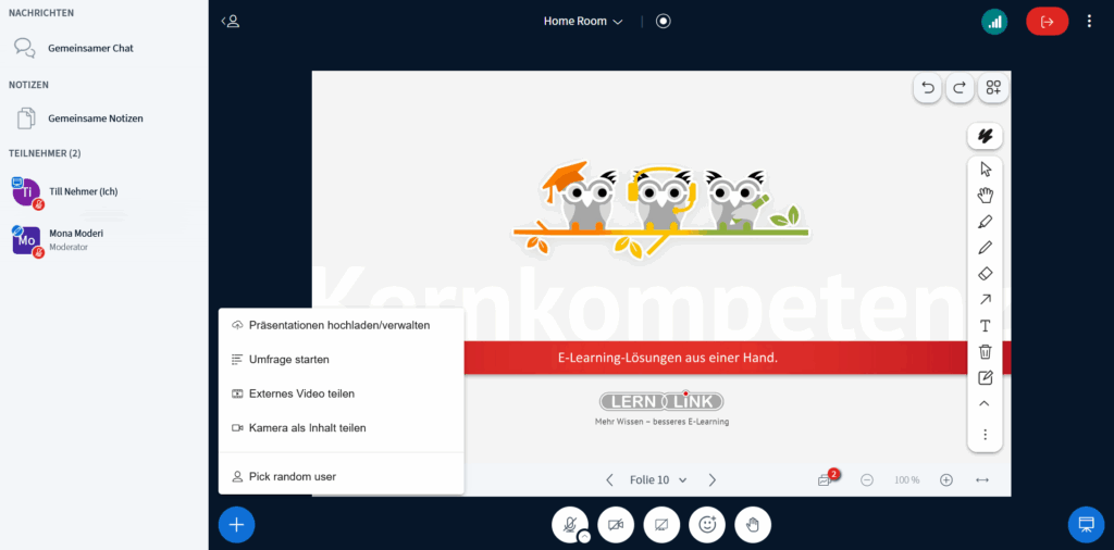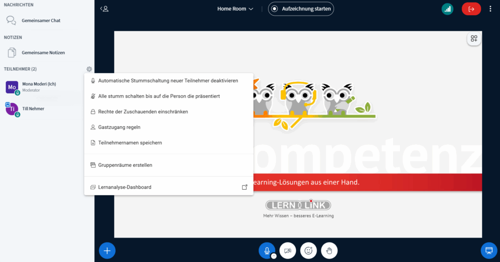 - Layouteinstellungen vornehmen (z:B. die Präsentation oder Videos in den Fokus rücken).
